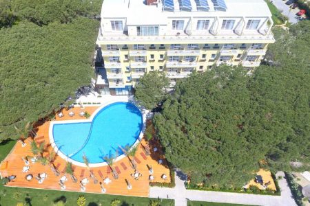 Közvetlen tengerparti hotel, saját stranddal, melyhez természetesen napágyak és napernyők is tartoznak, ezen felül rendelkezik külső és belső medencével is, mely szintén a vendégek kényelmét szolgálja napozóágyakkal körül ölelve.